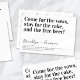 Convide amigos e família para se juntarem a vocês para suas celebrações de casamento com este divertido convite para o casamento. O texto diz: "Venha pelos votos, fique pelo bolo e a cerveja grátis!"