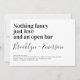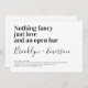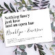 Convide amigos e família para se juntarem a vocês para suas celebrações de casamento com este divertido convite para o casamento. No texto lê-se "Nada de rico apenas de amor e de bar aberto"