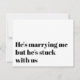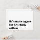 Esse cartão de apresentação de noiva engraçado diz: Ele está casando comigo, mas ele está preso conosco... você será minha dama de honra?