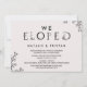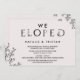 Este convite de tipografia floral "fugimos" é perfeito para uma recepção de fuga elegante. O design romântico apresenta letras simples decoradas com flores, bordas botânicas e um fundo rosa suave.