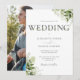 Este convite de casamento elegante com tipografia verde pode ser personalizado com a sua foto especial no verso. Criado por Thisisnotme©