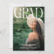 Celebre suas incríveis notícias com amigos e familiares e crie o convite perfeito para a festa de formatura com este modelo simples, porém elegante. Este design de alta qualidade é fácil de personalizar para ser exclusivamente seu! Este anúncio de formatura com foto apresenta sua foto favorita com o título 'GRAD' em letras brancas elegantes e o ano da turma, nome e escola ou faculdade. O verso permite que você personalize os detalhes do seu evento. Vamos celebrar o formando!