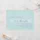 Convites de chá de panela modernos e casuais com o nome da noiva-a-ser apresentado em script manuscrito. Cor azul macia.