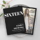 O elegante e doce modelo de 16 Convite de aniversário com fundo preto e branco e tipografia moderna.
