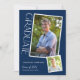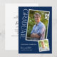 Este convite de formatura apresenta uma tipografia elegante e 2 fotos para um design moderno. Este convite oferece texto branco em um fundo azul escuro e texto personalizado, no verso, para os detalhes da sua festa.
