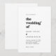 Este convite de casamento para a tipografia negra moderna é perfeito para um casamento simples. O design minimalista preto-e-branco apresenta uma fonte retrô, mas contemporânea, com um toque único da boêmia rústica. Perfeito para qualquer estação. Mantenha o mínimo possível ou adicione seus próprios gráficos e trabalho de arte.