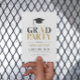 Formando de design de tipografia retrorística elegante do partido em cinzas e ouro sobre fundo branco. Simples convite para festas de formatura baseado em tipografia.