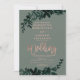 Tipografia rosa dourada Convite para casamento de cinzas flóricas com folha de cor verde-d-água pintada manualmente. O plano de fundo da cor verde é totalmente personalizável