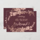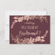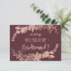 Você será minha dama de honra em um moderno, bonito guião chic e elegante guião de ouro rosa, cartão de casamento Floral vermelho-burgundy com folhagem de ouro pintada à mão e falsa tipografia de ouro rosa. O fundo de cor burgundy é totalmente personalizável. Perfeito para casamento chic, elegante