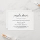 Esses convites para chás de na moda apresentam um papel branco, com aspecto de papel aquoso e elegante caligrafia preta para um aspecto moderno minimalista.