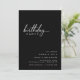 Convites de festas de aniversários pretos com texto branco. Design simples e somente texto que é adequado para qualquer idade.