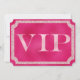Este convite de festas personalizado apresenta um tíquete VIP glamouroso com uma folha cor-de-rosa e um design brilhante. O plano de fundo apresenta uma textura de folha rosa brilhante e quente, com um quadro de estilo brilhante brilhante. "VIP" é impresso na parte frontal em uma fonte grande, rosa. A parte de trás do convite contém as informações do evento.