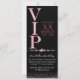Esta parte personalizada ou convite de evento apresenta um design de tíquete VIP glamouroso. O fundo é um preto sólido com acentos de brilho cor-de-rosa na parte inferior. Um título "VIP" grande é impresso à esquerda em uma fonte de estilo brilhante cor-de-rosa. Uma banda de diamantes separa as partes superior e inferior.