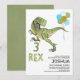Convite de Aniversário de 3 anos do Tiranossauro Três Rex Dino