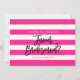 Essa chic Will You Be My Junior Bridesmaid card apresenta as palavras "Junior Bridesmaid" em um roteiro de pincel preto sobre um fundo de listras rosa e branca. A placa tem um lado preto nas costas. Veja aqui os itens de Chá de panela / Casamento correspondentes https://www.zazzle.com/collections/119250194970828530?rf=238364477188679314 Personalize este cartão substituindo o texto do espaço reservado no modelo para adicionar suas informações. Para obter mais opções, como alterar a fonte, o tamanho/cor do texto e o espaçamento entre letras, clique no botão "Personalizar". *Observe que a Marca d'água do Zazzle que aparece na visualização de zoom NÃO aparecerá no produto impresso final. © Rosewood e Citrus