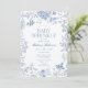 Convites Toalha Azul De Jouy Francesa Floral Festa de Bebê