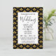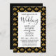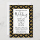 Convites de casamento clássicos: com ouro de fleur de lis, uma fronteira preta com padrões. Este convite de casamento, que pega os olhos, ainda que elegante, faz uma excelente adição a uma coleção de casamento estilo ritzy no centro da cidade. O texto personalizado inclui nomes, data e hora, local e informações de contato. A cor de fundo também pode ser alterada se você desejar um chute extra.