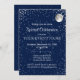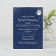 Moderno e elegante com fundo azul e estrelas prateadas e uma lua. Você pode personalizar o texto facilmente para qualquer ocasião. Mais informações em zazzle.com/GlitterInvitations