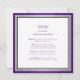 Convites de aniversário. Adequado para todos os aniversários e eventos etários. Estilo simples com cores de listras roxas e prateadas com esboços em preto e branco. O Rsvp está disponível sob solicitação em estilo semelhante.