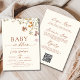 Tornar o planejamento simples com este bebê de flor selvagem multifuncional no Convite para Chá de fraldas Bloom com um código QR integrado para fácil RSVP. Essa design encantadora mostra flores silvestres delicadas em tons suaves e terríveis, criando uma estética quente e convidativa. Perfeito para um chá de fraldas moderno, inspirado na natureza, com um toque de elegância.