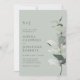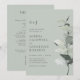 Tudo em Um Convite de Casamento Botânico Eucalyptus.. Nosso convite de casamento botânico único "All in One" apresenta uma elegante ramificação de eucalipto com aquarela em tons de sábio e verde empoeirado no texto do convite ao seu lado. A parte de trás do convite contém todos os detalhes que você normalmente veria em cartas separadas dentro do pacote de casamento. No verso há também um exemplo de gráfico de código QR que você pode personalizar instantaneamente digitando no seu próprio site de casamento URL Todo texto de exemplo também pode ser facilmente revisado com suas próprias informações sobre o modelo de personalização.