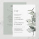 Tudo em Um Convite de Casamento Botânico Eucalyptus.. Nosso convite de casamento botânico único "All in One" apresenta uma elegante ramificação de eucalipto com aquarela em tons de sábio e verde empoeirado no texto do convite ao seu lado. A parte de trás do convite contém todos os detalhes que você normalmente veria em cartas separadas dentro do pacote de casamento. Este convite de casamento moderno, à frente e ao fundo, foi concebido para ser elegante e consciente do orçamento... para não mencionar a poupança de tempo. Na parte de trás, há também um modelo de gráfico de código QR que você pode substituir por seu próprio código (ou excluir se você não planeja usar um). Todo texto de exemplo pode ser facilmente revisado com suas próprias informações sobre o modelo de personalização. Uma versão de orçamento com papel semismalho de 110 lb também está disponível no mesmo design.