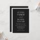Faça uma declaração ousada e eterno com este convite elegante de casamento negro, com um layout minimalista limpo com tipografia refinada e um conveniente código QR para RSVP sem esforço ou acesso ao site. O elegante design negro exumenta luxo e sofisticação modernos — perfeito para casamentos formais, negros ou contemporâneos que valorizam estilo e simplicidade.