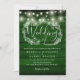 Um convite de casamento rústico com luzes bonito de cordas e uma delicada garland floral rústica desenhada à mão de folhagem botânica com tipografia na moda num fundo de madeira rústica verde esmeralda. Personalize com todas as suas informações especiais sobre o dia do casamento, incluindo seu RSVP, acomodações e detalhes adicionais. Projetado por Thisnotme©