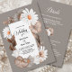Convide seus amigos e entes queridos para o seu casamento com este convite floral de outono de 2010 com uma fronteira de cinza com petúnias e margaridas brancas. Este convite é perfeito para um casamento de jardim. Projetado para o casal econômico, este convite inclui as informações de recepção, os detalhes da solicitação de RSVP e quaisquer outras informações que você queira incluir no verso do convite, salvando o custo de compra de cartazes extras e artigos de papelaria.