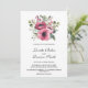 Convide seus amigos e entes queridos para o seu casamento para testemunhar e celebrar o início de sua jornada ao longo da vida com este convite que apresenta flores cor-de-rosa e ramos de eucalipto espalhados pelo centro da design. O texto personalizável permite adicionar sem esforço seus nomes, data de casamento e os detalhes necessários de sua celebração. Acomodando casais com orçamento consciente, este convite oferece modelos de texto convenientemente colocados do lado oposto. Esses modelos o orientam facilmente na inclusão de informações adicionais, como local de recepção, detalhes de RSVP e prazo, acomodação e instruções, se necessário, e quaisquer outras informações que você queira incluir.