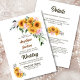 Convide seus amigos e entes queridos para o seu casamento com este convite rústico com girassóis vibrantes, rosas cor-de-rosa delicadas e torres de galhos de eucalipto para ajudar a compartilhar sua alegria no seu dia especial. Projetado tendo em mente o orçamento, mais detalhes podem ser incluídos no verso do convite, incluindo os detalhes do local de recepção, informações de RSVP para garantir que os convidados confirmem sua presença no dia especial e quaisquer outros detalhes que os seus convidados possam exigir.