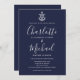 Com ancora de um navio e nomes de estilo de assinatura, este convite de casamento náutico elegante pode ser personalizado com todas as suas informações especiais sobre o dia do casamento no verso, incluindo o seu RSVP, alojamento e detalhes adicionais. Projetado por Thisnotme©