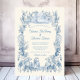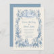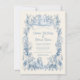 Convites românticos de Casamento de Toile Elegante. Possui uma casa de campo Chatueau, casal vitoriano e estrutura floral em azul pálido e poeirento sobre fundo de creme leve. Perfeito para um local de casamento. Para fazer mais mudanças, vá para Personalizar este modelo. Na parte inferior você verá "Quer personalizar este design ainda mais? Clique em EDIT usando a ferramenta Design. A partir daí você pode mudar algumas fontes e algumas cores, mover coisas ou excluir o que você precisa. Um pequeno conteúdo de geração de meia-jornada combinado com elementos desenhados à mão.