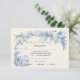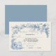 Cartões de resposta RSVP de Casamento de Toile Elegante Romântico. Apresenta um casal vitoriano e uma estrutura floral em azul pálido e poeirento sobre fundo de creme leve. Perfeito para um local de casamento. Para fazer mais mudanças, vá para Personalizar este modelo. Na parte inferior você verá "Quer personalizar este design ainda mais? Clique em EDIT usando a ferramenta Design. A partir daí você pode mudar algumas fontes e algumas cores, mover coisas ou excluir o que você precisa. Um pequeno conteúdo de geração de meia-jornada combinado com elementos desenhados à mão.