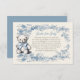 Elegante Toile de jouy Livros de Chá de fraldas para Cartões de Bebê. Possui um adorável Urso de Teddy com uma estrutura floral em azul pálido e poeirento sobre um fundo de creme leve. Perfeito para um chá de fraldas francês country para um menino ou menina. Para fazer mais mudanças, vá para Personalizar este modelo. Na parte inferior você verá "Quer personalizar este design ainda mais? Clique em EDIT usando a ferramenta Design. A partir daí você pode mudar algumas fontes e algumas cores, mover coisas ou excluir o que você precisa. Um pequeno conteúdo generativo de meia-jornada combinado com elementos desenhados à mão