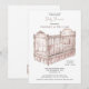 A pink toile baby shower design created for a girl baby shower, featuring a delicate nursery crib illustration in a classic toile style. The soft line artwork creates a gentle storybook nursery scene that celebrates the arrival of a sweet baby girl. Pink lettering paired with the vintage nursery illustration gives the design a warm and charming feel that works beautifully for girl baby showers, nursery themed celebrations, and gatherings welcoming a new little girl. Available in print, as a digital download, or both.