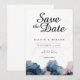 Anuncie seu casamento em estilo com este tom de joia luxuoso Salve o cartão de Data. Apresentando texturas de tinta marinho de álcool azul com sotaques de rosa dourado, este cartão Save the Date é ideal para casamentos modernos, comemorações de tom de joia e conjuntos de papelaria. 🌌 💍