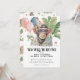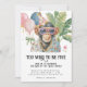 Celebrate a birthday that’s a little too wild to tame with this playful Too Wild to Be Five jungle birthday invitation featuring a stylish watercolor monkey wearing pink sunglasses, a festive party hat, and a fun tropical shirt. Surrounded by balloons, jungle leaves, and cheerful party accents, this design brings a lively safari vibe perfect for kids who love animals and adventure.