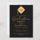 Um convite elegante e simples para uma festa de formatura tanto para ele quanto para ela. Fundo preto e um topo de tassel abstrato preto moderno em dourado falso com o ano dentro. Personalize e adicione um nome e detalhes da festa. O texto Formatura e o nome são escritos com estilo de letra manuscrita moderna. Texto em cor dourada.