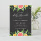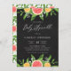Convide os convidados para o seu evento com este convite para o bebê do tema cítrico. Apresenta ilustrações de cor d'água de toranjas, clementinas, florais e verde sobre fundo de quadro negro. Este convite cítrico será perfeito para o tema dos citros e borrifadas de bebês de verão. Personalize adicionando os detalhes do evento.