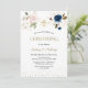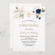 Design de cartão encantador com flores cor d'água, cor-de-rosa delicada e azuis, rosas esboçadas de ouro falso, cruz brilhante de ouro falso, confete dourado falso, sobre fundo branco. Use a ferramenta Personalizar para adicionar suas informações. Para encontrar itens, por favor, visite minha Coleção Elegante de Christening Baptism.