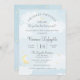 Uma pequena estrela giratória, sabe o quanto é amada? Design do céu azul-aquarela de bebê bonito com lua crescente amarela, estrelas e nuvens. Personalize este convite de chá de fraldas com os seus próprios nomes, endereço, data e registro.