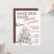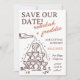 Torre de Champanhe Manuscrita Salve o Convite de Data Este Cartão de Data Funky Salva a Data Contém uma torre de champanhe desenhada manualmente com letra manuscrita. Uma maneira perfeita de notificar seus entes queridos de seu dia especial! Todas as cores de texto e fundo editáveis para corresponder ao seu tema! Crie algo exclusivo com este Anúncio Salvar a Data. Texto totalmente editável, cor do cliente e do plano de fundo! Clique em "Editar usando a ferramenta Design" para editar este design!