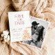 Esta foto colorida Salve a placa de data apresenta um layout exclusivo e retrô com uma torre de champanhe para o seu lançamento Salvar a data, onde você tem liberdade para criar algo exclusivo seu! Edite facilmente o texto e as cores para corresponder ao seu estilo! As cores de texto e de fundo são totalmente editáveis —> clique no botão "Editar usando a ferramenta Design" para editar!