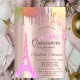 Convites Torre Eiffel, Arco-Íris, Rosa Dourado Quinceañera
