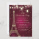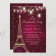 Torre Elegante Eiffel, tiara e luzes de cordas em um fundo vermelho.