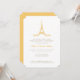 Este convite para a na moda quinceañera apresenta uma ilustração feita à mão da Torre Eiffel e estrelas em ouro sobre fundo branco.