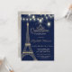 Torre Elegante Eiffel com brilho dourado, tiara e luzes de cordas sobre fundo azul marinho.