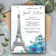 Convites Torre Eiffel Floral Azul Elegante Doce Dezesseis