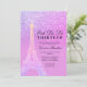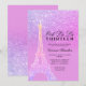 Um treze moderno, chic e glamoroso com uma torre Eiffel tema Paris França desenhada à mão com brilho roxo rosa gradiente ombre faíscas em um fundo rosa quente editável.